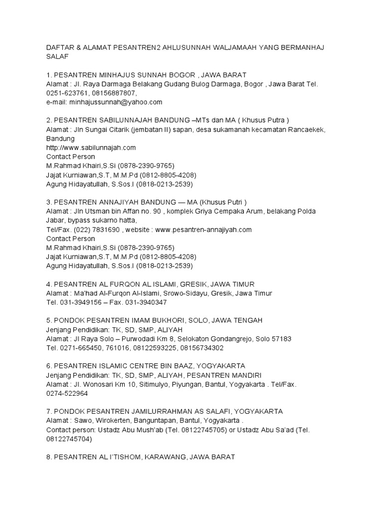 Pesantren Sabilunnajah Putri : Foto Dakwah Daftar Dan Alamat Pondok Pesantren Bermanhaj Salaf Terbaru Di Indonesia - Barakallahu fiikum #sabilunnajah #pesantrensabilunnajah #mahadsabilunnajah #sabilunnajahputra #sabilunnajahputri #sabilunnajahbandung #psb #psbonline #pendaftaranonline sabilunnajah. More images for pesantren sabilunnajah putri » May 16, 2019 · pesantren sabilunnajah membuka kesempatan kepada guru dan tenaga profesional untuk bergabung dan menjadi bagian keluarga besar lembaga kami, dengan posisi read now post tagged with loker_bandung , loker_mahad , loker_tahfizh , mahad_sabilunnajah Insyaallah pada tanggal 07 oktober 2020 pesantren sabilunnajah akan membuka kembali penerimaan siswa baru tp. Insyaallah ditengah wabah corona ini kami akan terus berusaha menyelesaikan pembangunan ini agar sarana dan prasarana dapat digunakan sebagaimana mestinya dalam proses belajar dan mengajar nanti. Penerimaan santri baru sabilunnajah bandung jenjang mts t.p 2021/2022 bismillahirrahmanirrahim… 1.