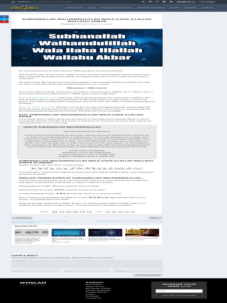 Jan 07, 2020 · easy subhanallah walhamdulillah wala ilaha illallah dhikr fortunately there is dhikr which can be learned in just a few short minutes which is said to have great rewards / benefit. Read subhanallah walhamdulillah from the story lirik shalawatan by iiiguzel with 37,571 reads. About press copyright contact us creators advertise developers terms privacy policy & safety how youtube works test new features press copyright contact us creators. More images for subhanallah walhamdulillah wala ilaha illallah wallahu akbar lirik » Follow my youtube channel for more islamic vidos like share & subscribesubhanallah walhamdulillah wala illah illallah wallahu akbar (allah ki qudrat )macca d. Subhanallah = maha suci allah walhamdulillah = dan segala puji bagi allah wa la ilaha illallah = dan tiada tuhan selain allah wallahu akbar = dan allah. Spiritique,ayisha abdul basith,quran in urdu,quran urdu translation,stories of the prophets,higher self,subhanallah,sleep,sleep music,the soul of wind,sleepi. The prayer is said to be of minimum recitation that suffices an illiterate person or for a non arab. May 16, 2021 · "subhanallah walhamdulillah" lirik latin. Subhanallah walhamdulillah wala ilaha illallah wallahu. Dapatkan lirik lagu lain oleh jeffry al buchori di kapanlagi.com. Lirik subhanallah oleh jeffry al buchori. Subhanallah walhamdulillah wa laa ilaahaillallah subhanallah walhamdulillah wa laa ilaahaillallah allah allah allah ya allah allah allah allah ya allah.